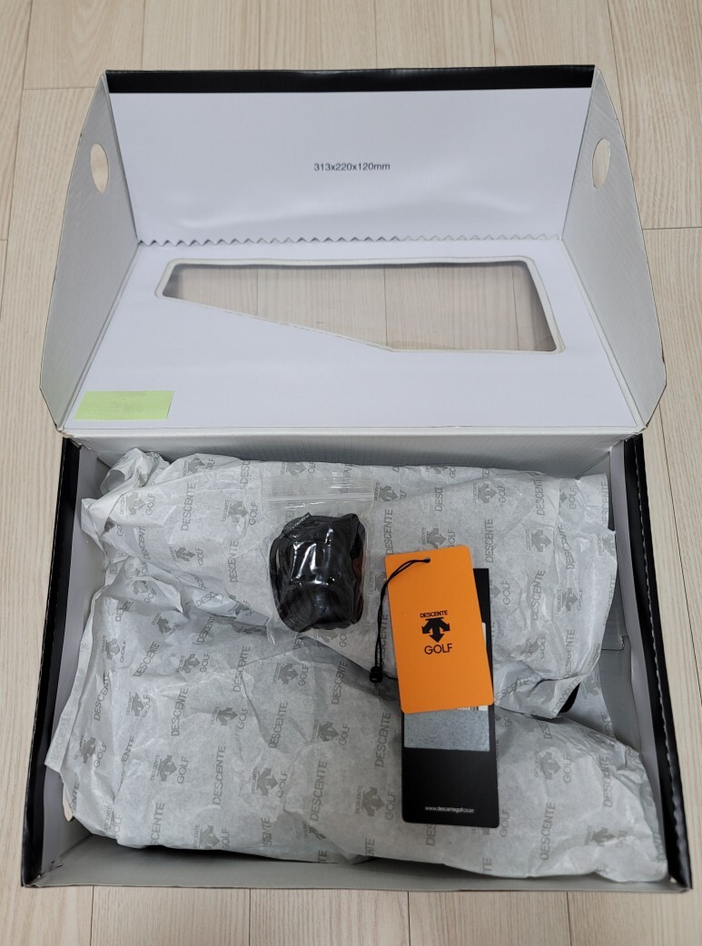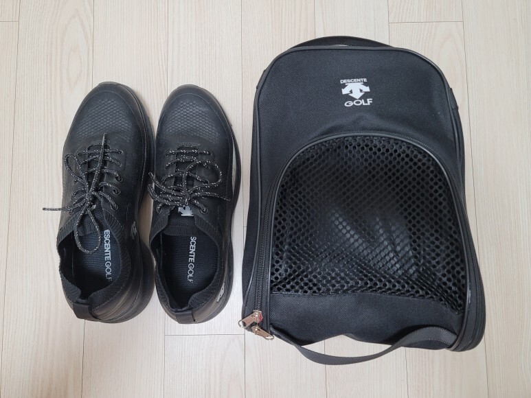 데상트 골프화 파우치와 골프화 전체 모습입니다.