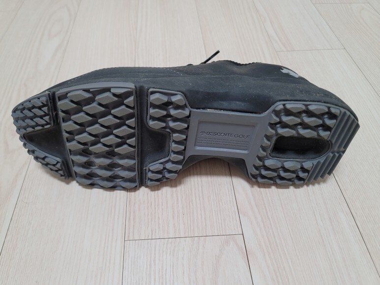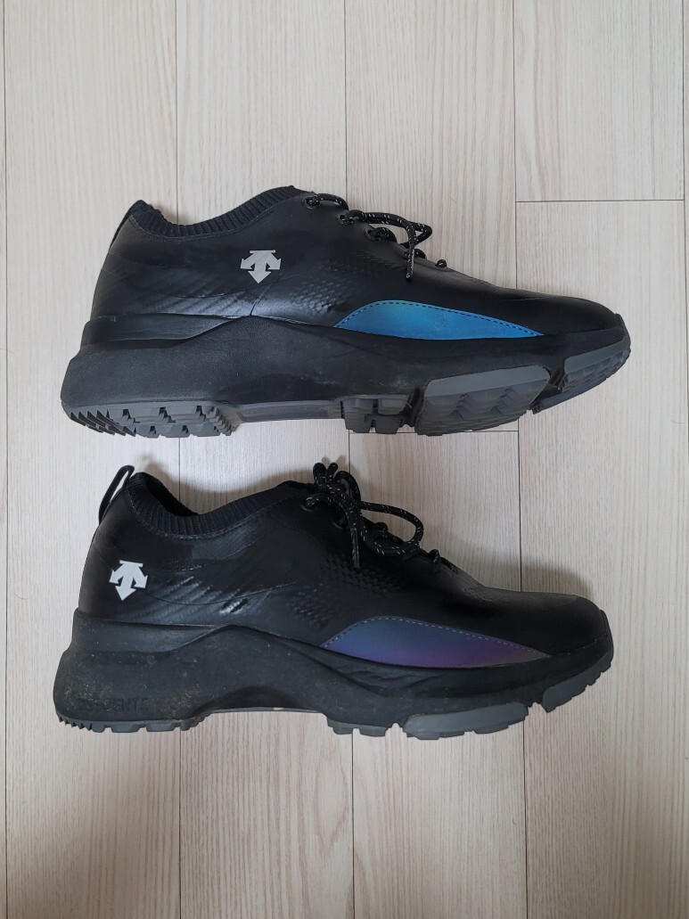 데상트 골프화의 안쪽(위)과 바깥쪽(아래) 모습입니다.