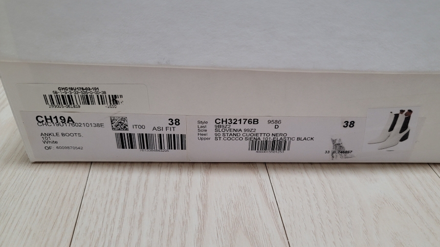 박스 옆면에는 앵클부츠의 정보가 담겨 있습니다.