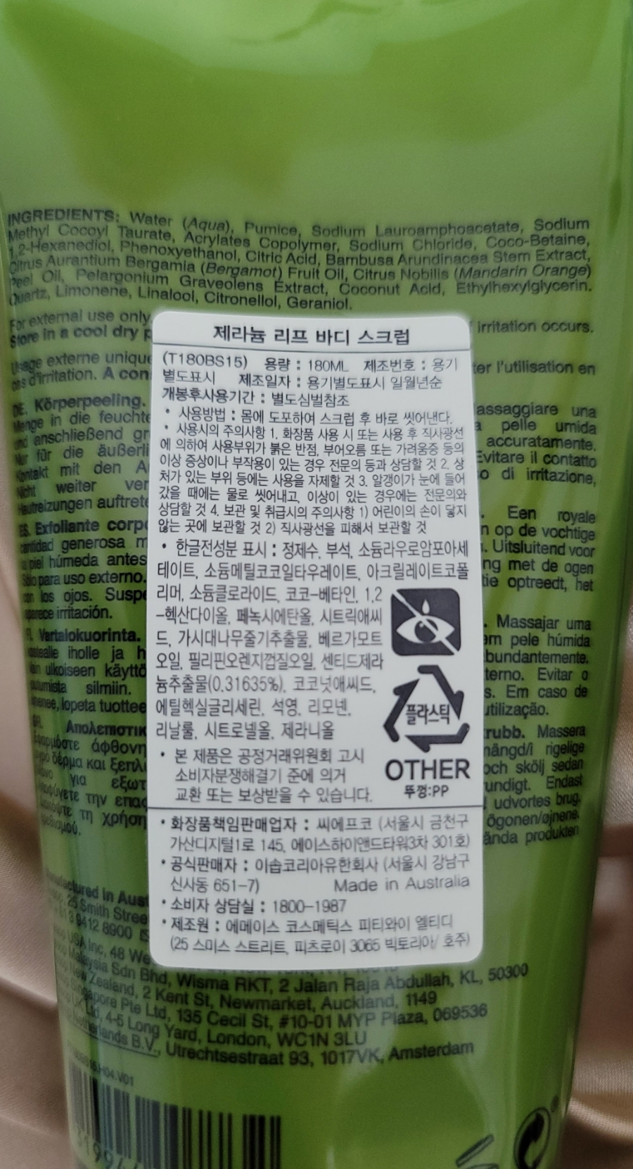 제라늄 리프 바디 스크럽으로 골랐습니다.