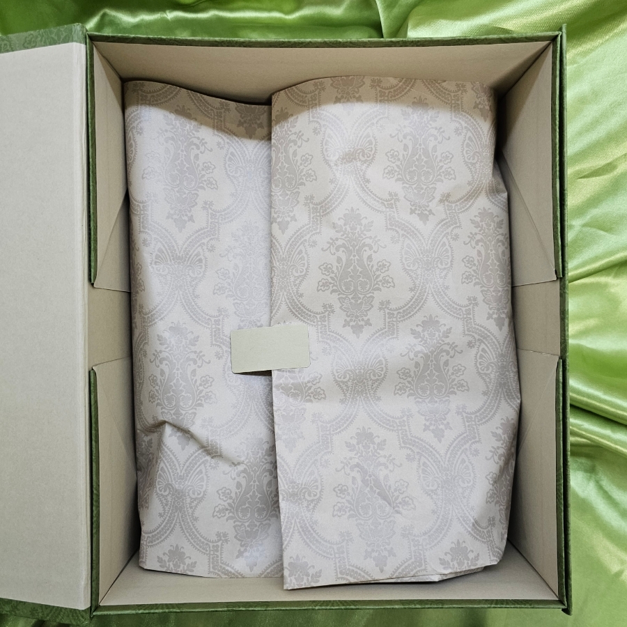 상자를 열면 얇은 포장지에 덮여 있습니다.