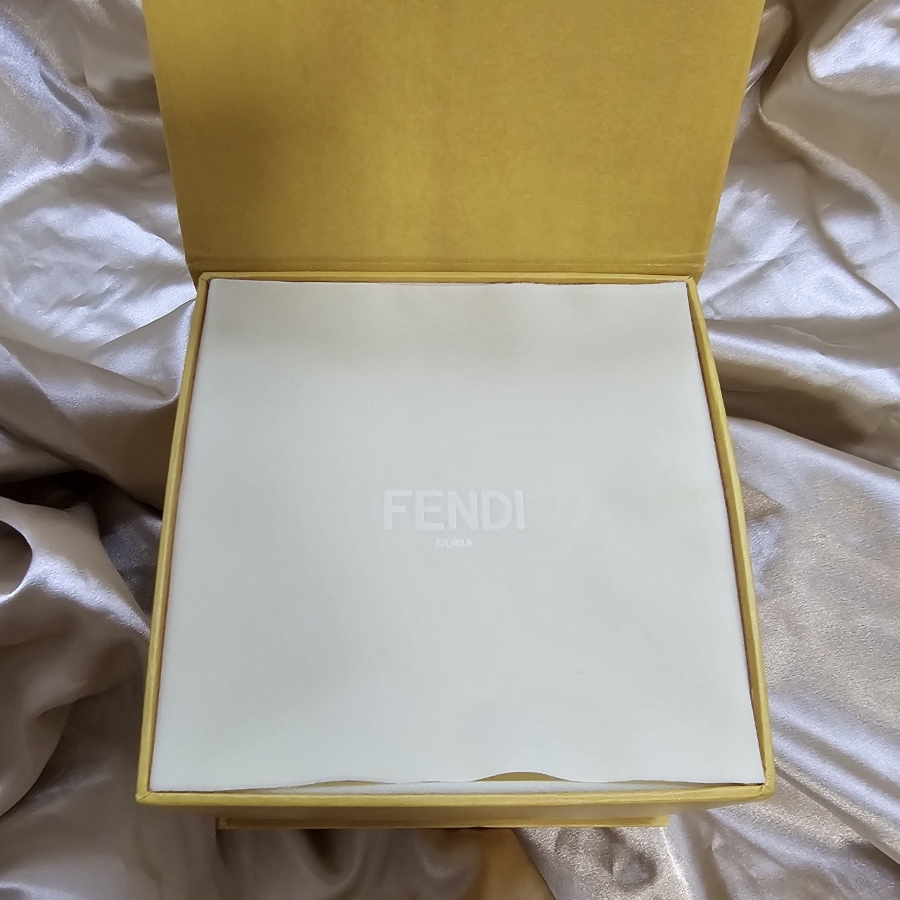 뚜껑을 열면 FENDI가 새겨진 천이 덮여 있습니다.