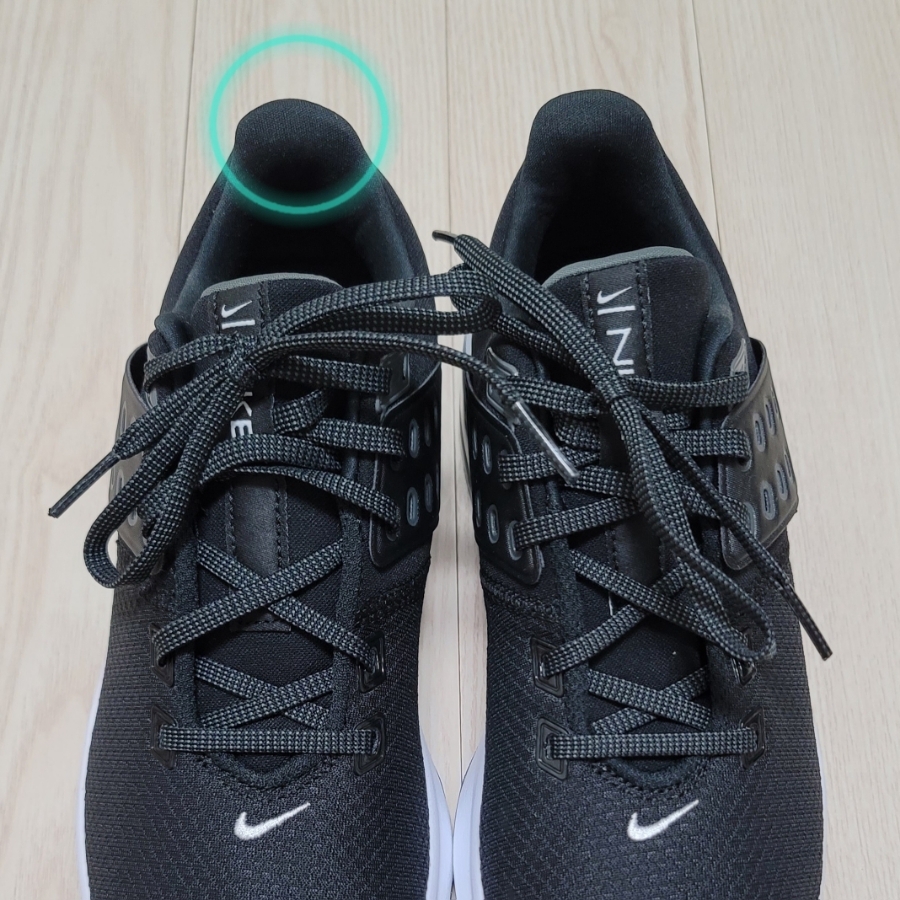 사진 속 원형으로 표시된 뒤축 부분이 잘 무너져서