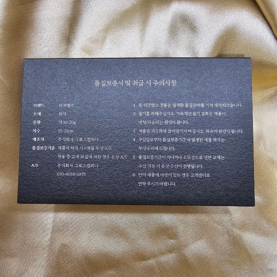 품질보증서에는 소재, 중량, 치수, 품질보증 기준, A/S 등의 내용이 꼼꼼하게 들어 있어서 더욱 믿음이 갔어요.