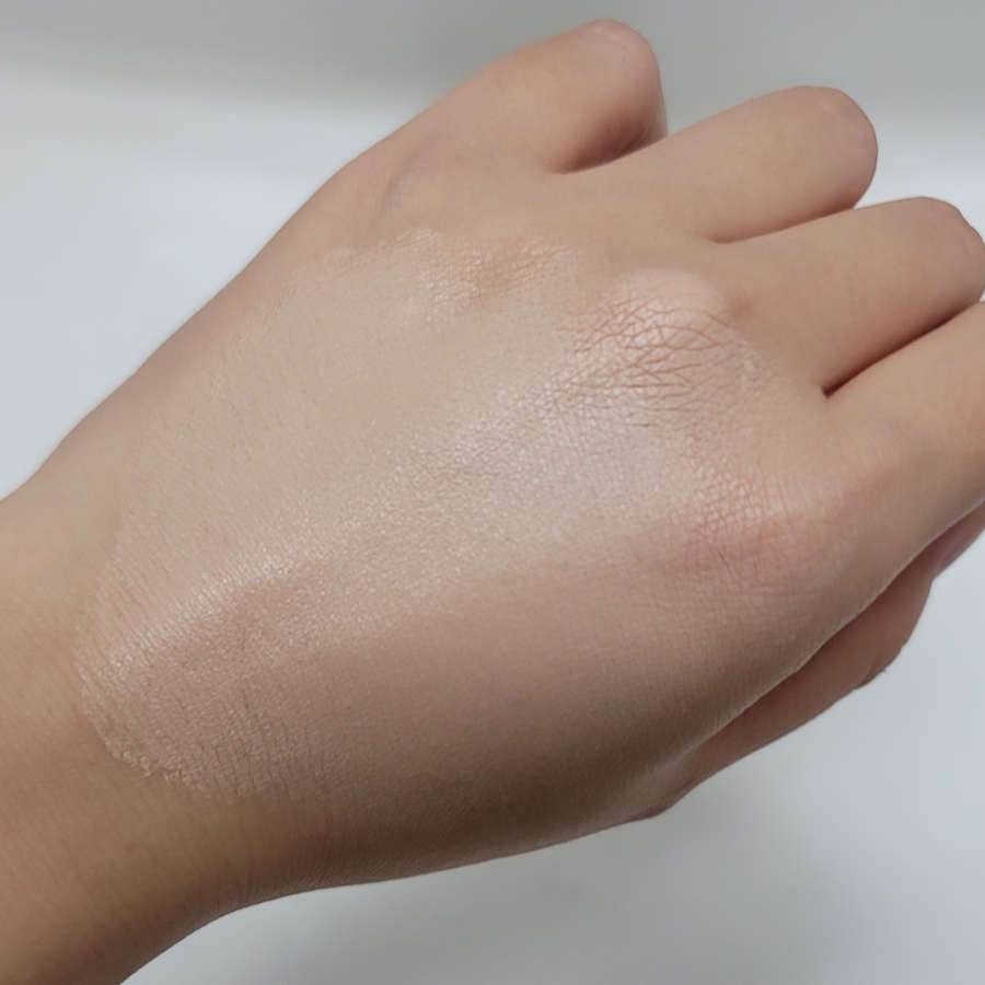 클렌징 오일을 사용하기 전 손등에 쿠션을 발랐어요.