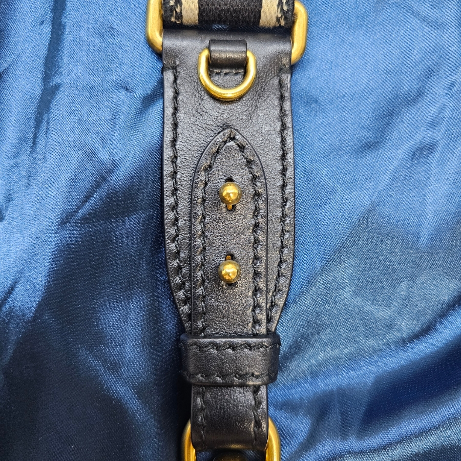 무다스 자가드 패턴 가죽 배색 가방 스트랩 체인 패턴