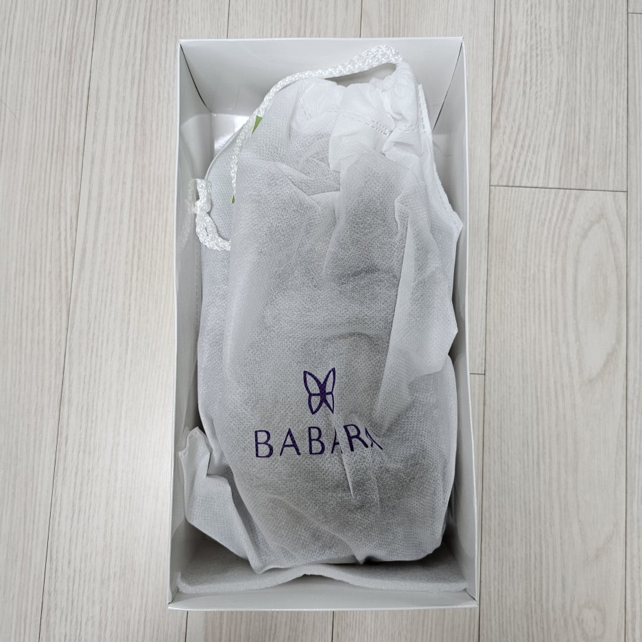 상자를 열면 BABARA가 프린팅 된 더스트 백에