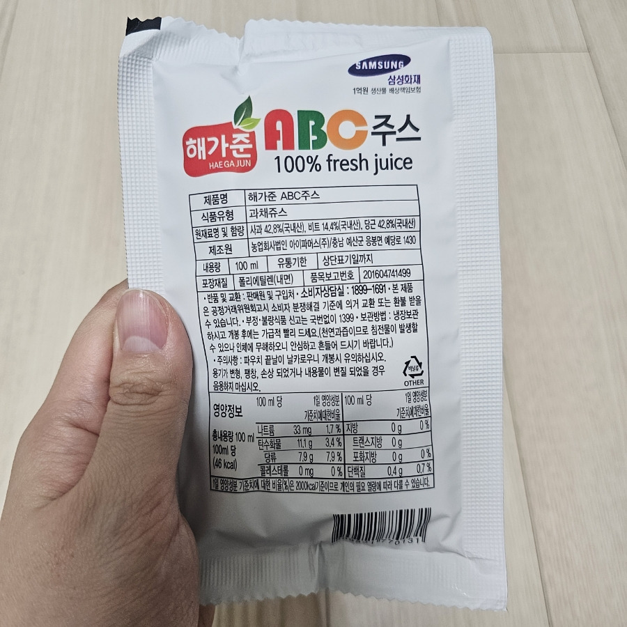 해가준 ABC 주스는 제품 이름에서 알 수 있듯이