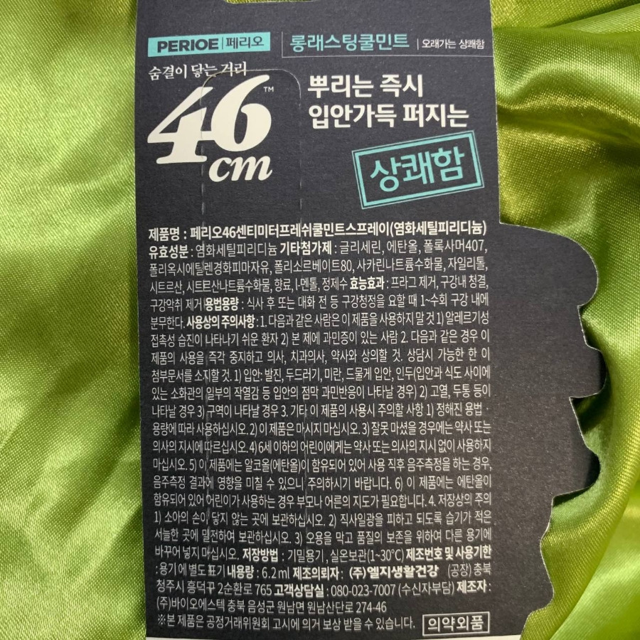 페리오 46cm 롱래스팅 쿨민트 마우스 스프레이 사용기입니다.