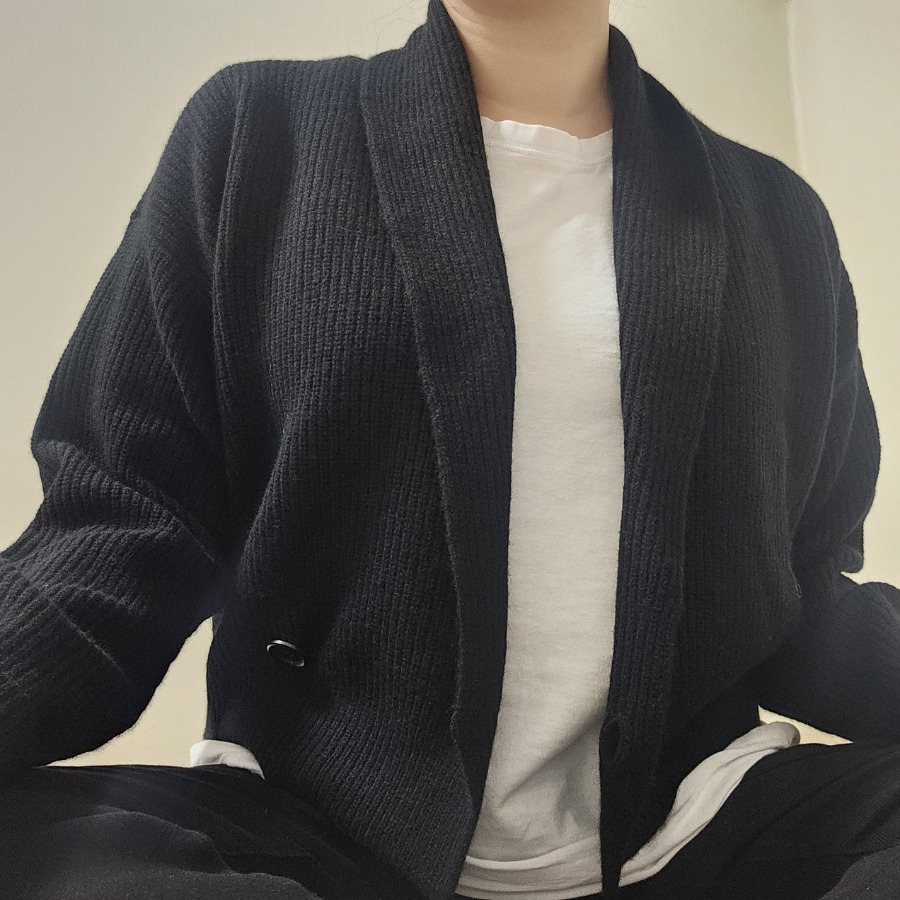 목을 안정적으로 감싸주는 숄카라 덕분에 보온성이 좋고, 실루엣이 단정해 데일리 룩에서 활용도가 매우 높았습니다. 여러 시즌 두고 입을 수 있는 옷을 찾는 분들에게 충분히 추천할 만한 니트라고 생각합니다.