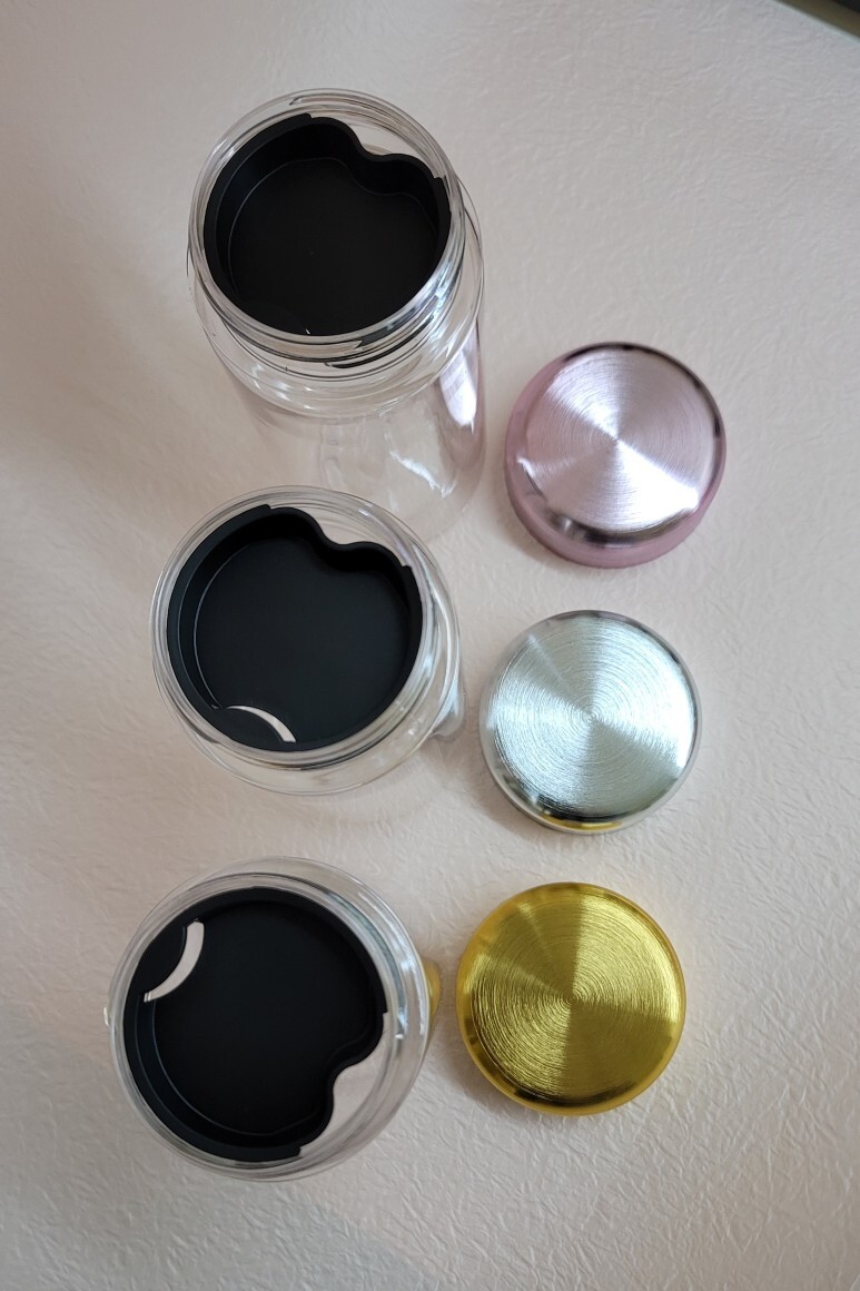 핑크, 실버, 골드 메탈 뚜껑이 시선을 사로잡습니다.