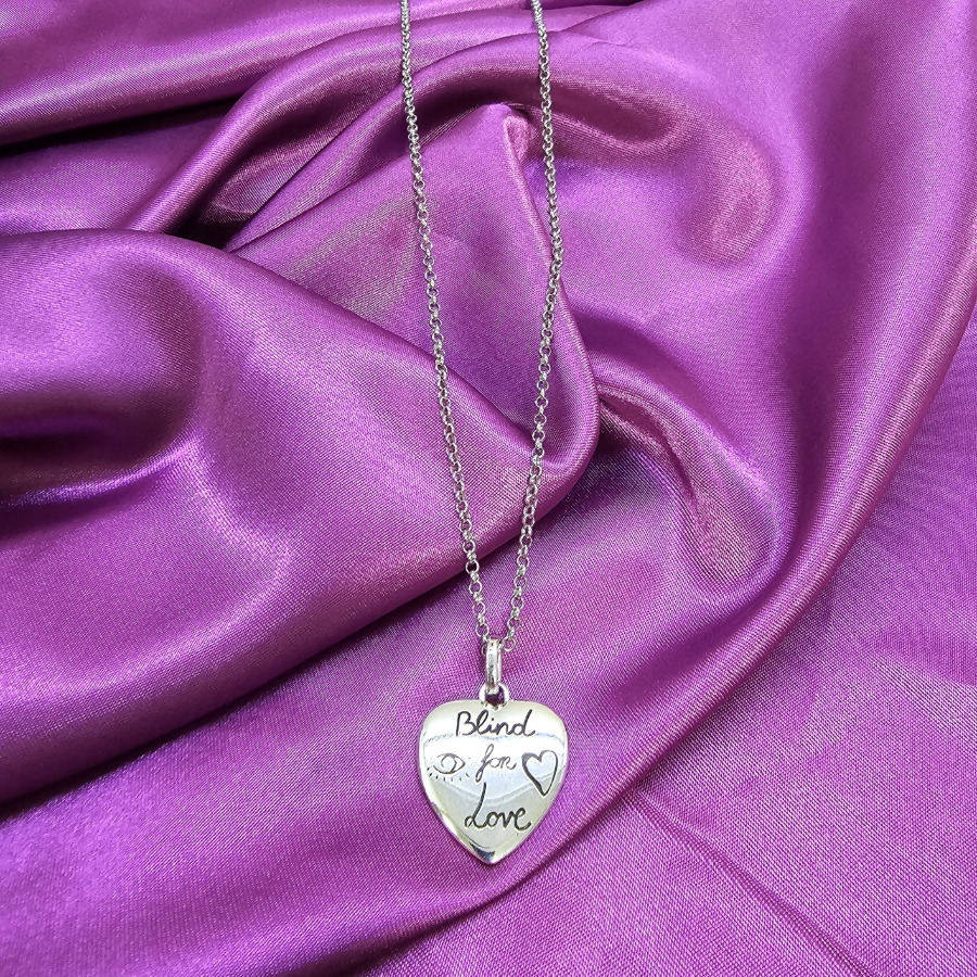 구찌 Blind for Love 목걸이는 구찌 주얼리 라인 가운데에서도 스토리와 감성이 또렷한 제품으로 꾸준히 언급되는 아이템이에요. 하트 모양 펜던트에 짧은 문구와 드로잉이 더해진 디자인으로, 화려한 장식보다는 메시지 중심의 분위기가 인상적입니다. 브랜드 특유의 로맨틱한 세계관이 담겨 있어 단순한 실버 목걸이와는 다른 성격을 가지고 있고, 감성적인 포인트 아이템으로 활용하기 좋습니다.