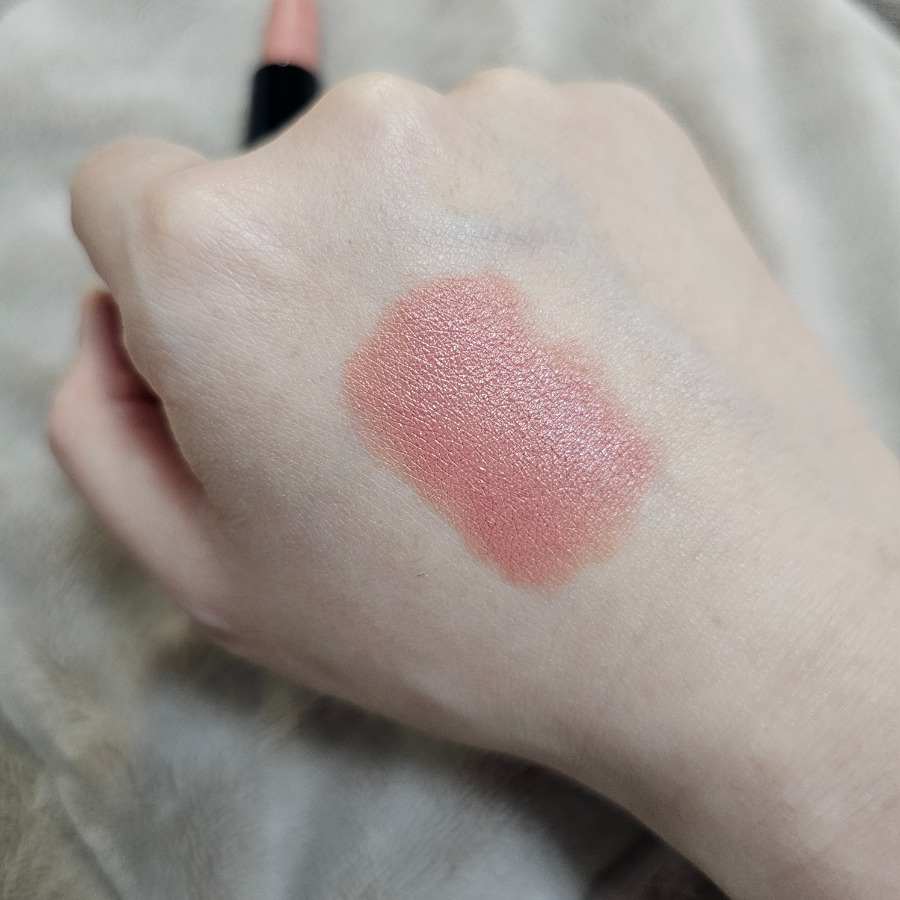 제형은 인텐스 라인답게 크리미한 편에 속합니다. 입술에 닿았을 때 미끄러지듯 발리며, 각질이 심하지 않은 상태라면 비교적 매끄러운 표현이 가능합니다. 다만 수분감이 아주 풍부한 타입은 아니기 때문에 입술이 많이 건조한 날에는 립밤을 가볍게 베이스로 깔아주는 것이 좋아요. 마무리감은 글로시하지 않고 세미 매트에 가까워서 깔끔한 립 표현을 선호하는 분들에게 잘 맞습니다.