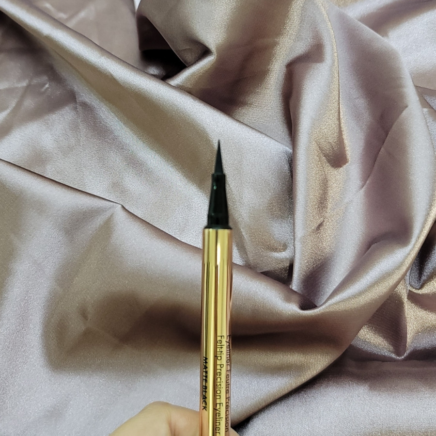 사용감에서 가장 만족스러웠던 부분은 라인이 굉장히 깔끔하게 그려진다는 점이에요. 브러시 결이 정리된 느낌이라 한 번에 라인이 이어지고, 중간에 끊기거나 뭉치는 현상이 거의 없습니다. 눈꼬리를 빼서 그릴 때도 끝이 날카롭게 정리되기 때문에 여러 번 덧그릴 필요가 없었고, 이 덕분에 눈매가 지저분해 보이지 않는 점이 좋았습니다. 매트 블랙 컬러 역시 회기 도는 거의 느껴지지 않고, 눈가에 밀착되듯 발색되어 전체적인 아이 메이크업 완성도를 한층 높여주는 역할을 합니다.