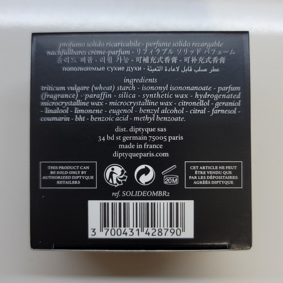 브랜드는 니치 향수로 잘 알려진 딥티크이고, 롬브르 단 로는 딥티크를 대표하는 향 중 하나로 꼽히는 라인입니다. 기존에는 오 드 뚜왈렛이나 오 드 퍼퓸 형태로 많이 알려져 있는데, 이 제품은 고체 향수 타입으로 출시된 점이 특징이에요. 알코올 베이스가 아니라 왁스 타입의 제형이라 분사형 향수와는 사용 방식부터 다릅니다. 손목이나 귀 뒤처럼 맥박이 느껴지는 부위에 소량을 덜어 발라 사용하는 방식이라 향을 조절하기도 비교적 쉬운 편이에요.