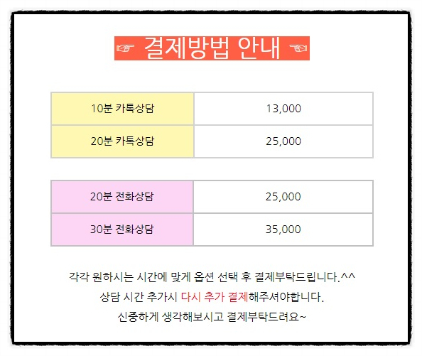 전화상담 이외에 카톡상담도 있으니 참고 부탁드립니다.