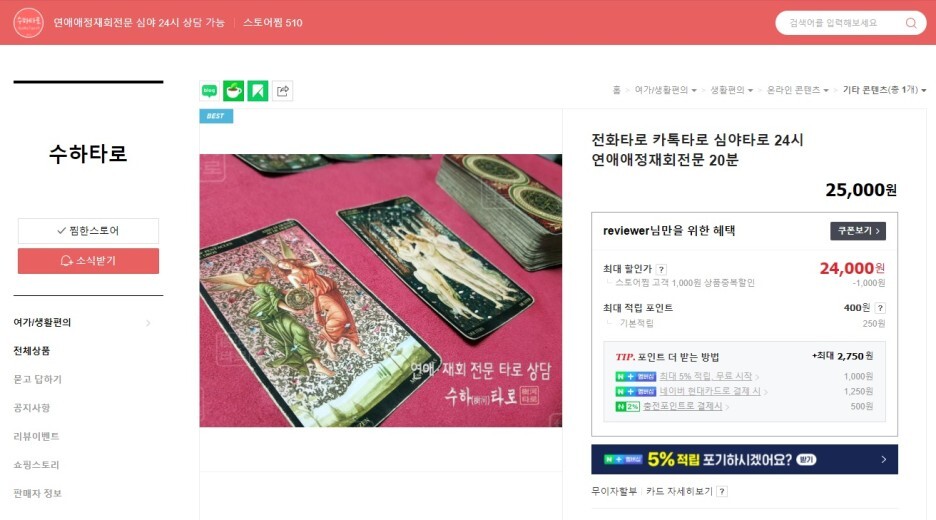 전화로 타로 상담을 해주는 수하타로 체험기입니다.