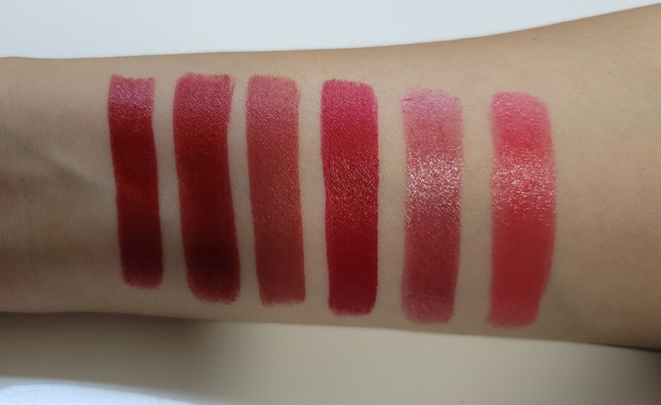 여섯 가지 컬러를 팔뚝에 발색해 보았습니다.