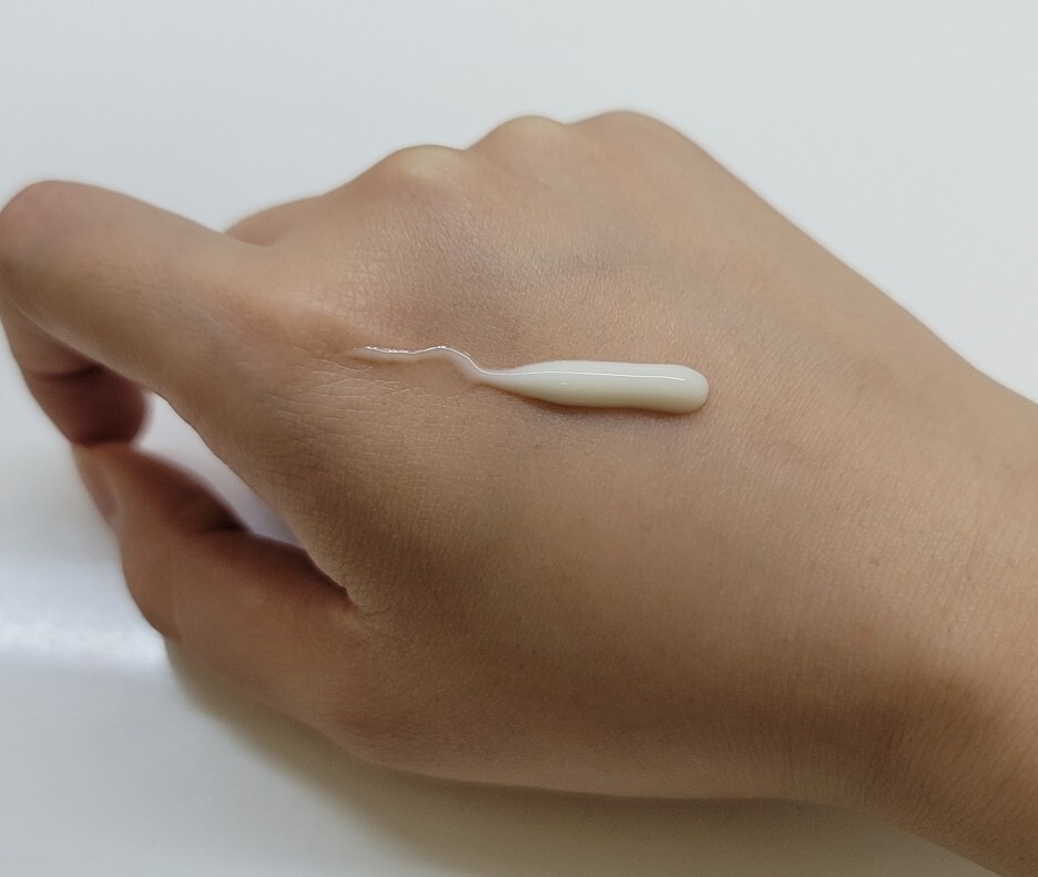 손등에 짜면 노르스름한 빛깔의 바디로션이 나옵니다.